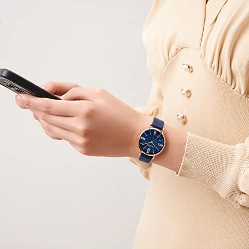 The leather strap is flexible and delicate.Alloy material is preferred , the watch case is light and thin and the blue color is beautiful which can be matched with various clothes.