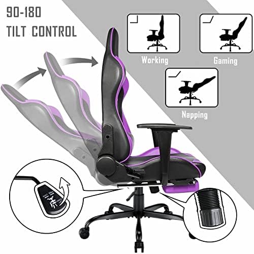 [Multi-function] 360 degree swivel, 90°to 155°backwards movement, 3.8” seat-height adjustment chair, retractable padded footrest, meet your different needs for work, game and rest.