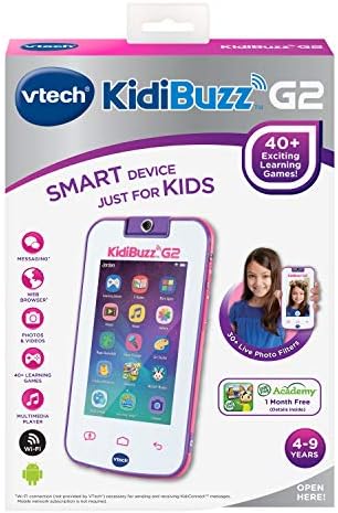 The KidiBuzz G2 is the Wi-Fi smart device that kids and parents will love Kids get the messaging photography games and music they want—and parents get peace of mind knowing kids can play connect and learn along the way Pair this device with the free KidiConnect app to send texts voice messages images and to approve your child’s contact list Passcode-protected parental controls also let you set time limits and add your own list of specifically approved websites The Wonder Masks app lets kids add movement-responsive face filters to pictures For augmented reality fun they can play Creature Detective which blends AR gaming with learning The KidiBuzz G2 comes with 40+ learning games that cover math spelling science problem-solving music Spanish and more Enjoy access to a free trial of LeapFrog Academy an interactive learning program filled with 2 000 engaging games and activities This device is not a cell phone Intended for ages 4-9 years Lithium-ion battery included Only charge the device using the included micro USB cable with the included power adapter or a computer (not included)