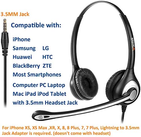 WIDE COMPATIBILITY: This Computer Headset fits for iPhone, Samsung, most Smart Phones and iPad iPod PC MAC Computer Laptops with SINGLE 3.5mm headset jack. For iPhone 7/ 7 Plus/ 8/ 8 Plus/ X/ XS/ XR or Newer iPhone, Lightning to 3.5mm Adapter is required(Supplied by Apple).