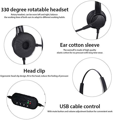 🎧ULTRA DURABLE HEADSET:Imported plastic injection,uni-body headband construction,flexible metal mic boom can be twisted 330 degrees,picks up your voice loud & clear.Appearance and firmness high-grade Office Headsets.