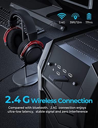 ☑️ 【Ultra-low Latency 2.4GHz Wireless Connection】Plugin the included USB transmitter to PC, PS4, Mac to instantly enjoy lag-free 2.4Gz wireless freedom within a wide range of 12m/39.4ft. It helps you stay connected with game competitions for up to 17H, even during snack breaks.