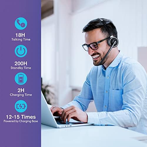 🏠{218H TALKTIME & 2H FAST CHARGING} – Our trucker bluetooth headset comes with a charging base, which supports 200H standby (12-15 charges) plus 18H of talk time for the wireless headset with microphone, with up to 218 hours of battery life, you can use it for a whole week. Once the charging base is fully charged, you can simply place the bluetooth headset with microphone on the charging case for easy charging and desktop placement.