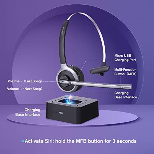 🏠{2 WAYS TO CHARGE & LOW BATTERY ALERT} – The trucker headset comes with a usb charging cable and a charging base station. You can plug the usb port directly to charge the bluetooth headset or place the trucker bluetooth headset on the charging base station to charge. Low battery alert: red light flashes. Make your life more convenient and easier!