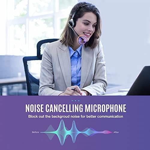 🏠{NOISE-CANCELLING MICROPHONE & MUTE FUNCTION} – The laptop headset with microphone feature advanced noise-canceling technology and vocal correction to isolate your voice from surrounding noise for clearer conversations so you can focus more. 330° rotatable mic for better sound pickup. You can easily adjust the volume, mute and activate Siri and Google Assistant (hold the MFB button for 3s) with the buttons on the microphone bar.