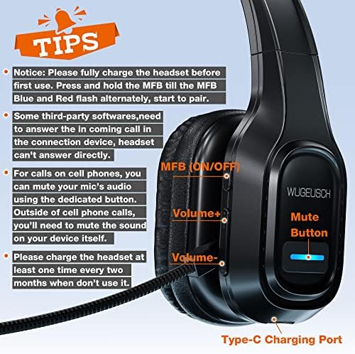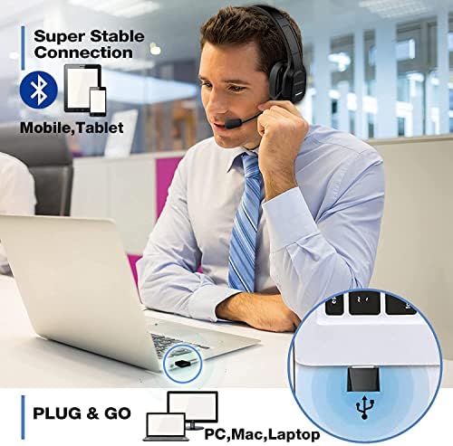 [AI-Powered Noise Cancellation] Our wireless microphone headset removes all background noise in calls. Through this noise canceling feature, only your voice is heard on the other end of the call. Accessible giant mute button is convenient to turn the microphone off and on during the calling.[Super Stable Connection] Use this headset with your laptop or PC! Plug in its USB dongle and enjoy seamless, stutter-free connection at all times. The headphones can also be paired through Bluetooth.