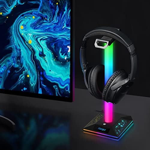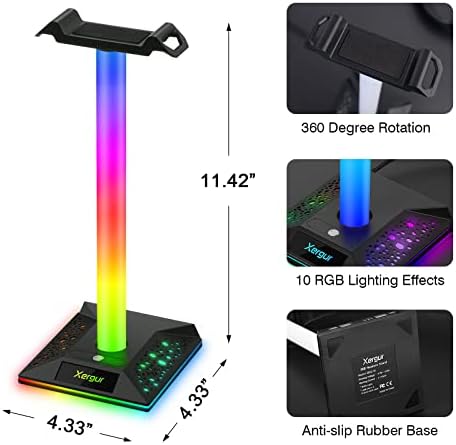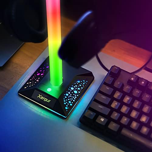 【RGB Lighting & Touch Control】: The headphone holder features 10 kinds of lighting modes, specially the multi-color flowing and single-color breathing mode, create a fantastic gaming atmosphere. which can be changed by touching button, You can enjoy different light modes in different scenes.