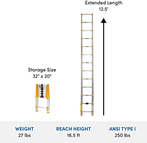 The XTEND+CLIMB® Home Series 770P is a versatile telescoping ladder designed with homeowners and DIY in mind. Standing at 12-1/2 ft and retracts down to 32 in, the 770P is the tallest of the three Home Series models making it ideal for reaching those higher areas around the house. As part of the Home Series, the 770P is compact and easy-to-use but still has the strength, safety and durability to tackle projects around the home. It extends and locks by the feet, so its only as tall as you need it. The double overmolded feet ensure traction. When you are done cleaning windows, clearing gutters or painting, this adjustable ladder goes right back into the smallest closet or corner of the garage and stays out of the way until you need it again.
