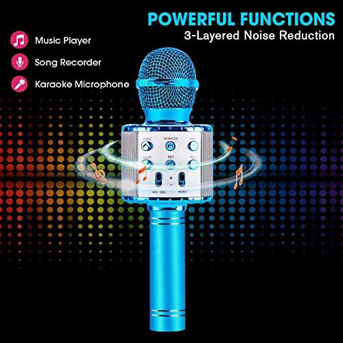 EASY TO USE: Multi-function buttons, easy to switch to different model, adjust volume, sing and play music. With echo model,our karaoke wireless microphone can bring a surrounding immersion. And the USB port allows you to plug USB, turn this magic piece to MP3, and play it directly. The Bluetooth microphone can be used as a karaoke microphone, a Bluetooth speaker, a loudspeaker, and a song recorder. Mini home KTV for music playing and singing at any time.