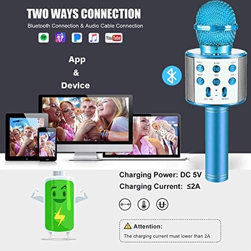 TWO WAYS CONNECTION: Bluetooth Connection & Cable Connection. You just need to connect your phone with cable or Bluetooth, and then open the singing APP on your phone. The built-in clearly audio and vividly sound effect can make you listening and singing anytime and anywhere. Notice:Bluetooth cannot connect to two microphones at the same time, One microphone cannot be paired with others.