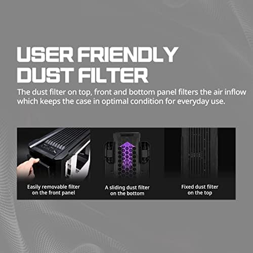 The dust filter on top, front and bottom panel filters the air inflow which keeps the case in optimal condition for everyday use.